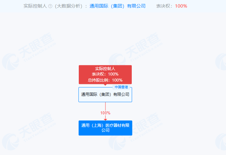 據(jù)天眼查,通用(上海)醫(yī)療器材有限公司成立于1996年,系通用國(guó)際(集團(tuán))有限公司全資子公司。