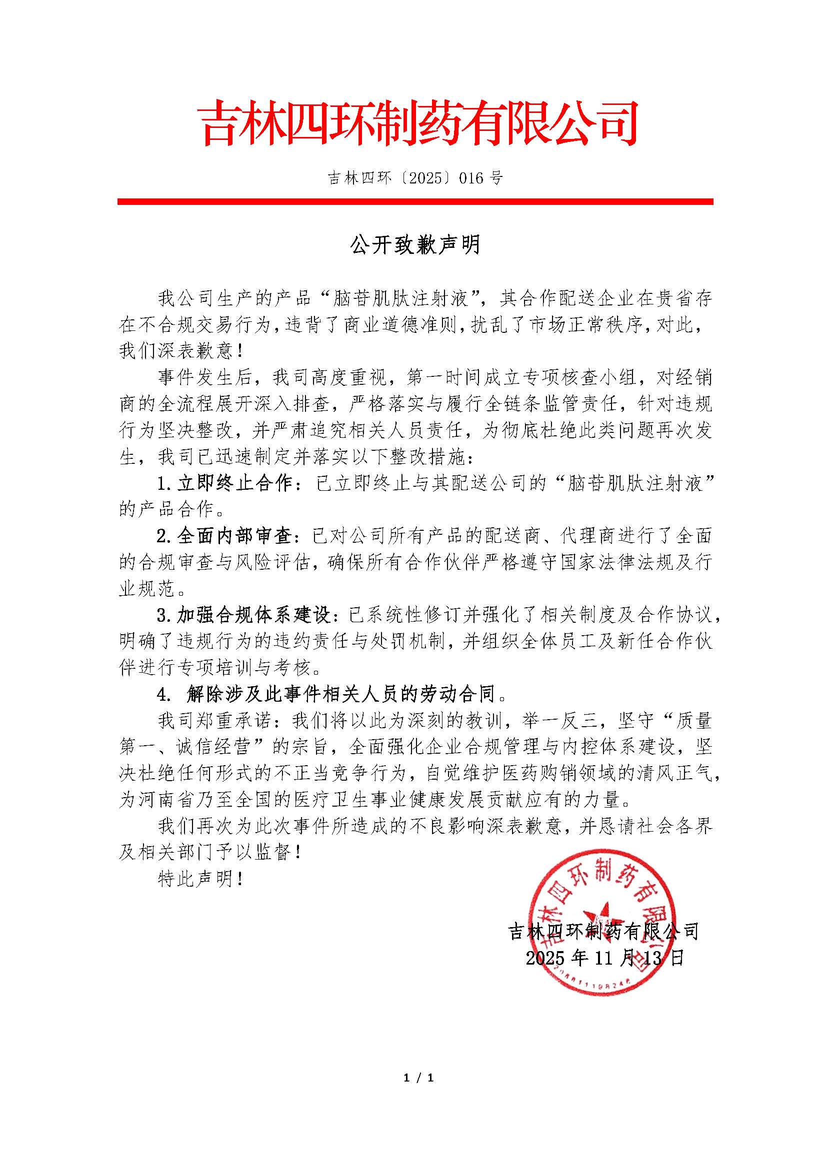 中國經(jīng)濟網(wǎng)12月22日訊 日前,河南省醫(yī)藥集中采購平臺在其官網(wǎng)公示了三份藥企公開致歉信。哈爾濱譽衡制藥有限公司、吉林四環(huán)制藥有限公司、珠海經(jīng)濟特區(qū)粵康醫(yī)藥有限公司分別就各自涉及的不合規(guī)交易行為公開致歉。