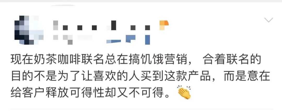 此外,部分食品品牌推出的聯(lián)名套餐“翻車”,也引發(fā)消費(fèi)者吐槽,“宣傳標(biāo)語低俗令人反感”“宣發(fā)套餐種類與實(shí)際套餐種類不一致”“周邊產(chǎn)品數(shù)量少”“未對已下單消費(fèi)者進(jìn)行鎖單造成先下單的消費(fèi)者拿不到周邊產(chǎn)品”等聲音不斷。