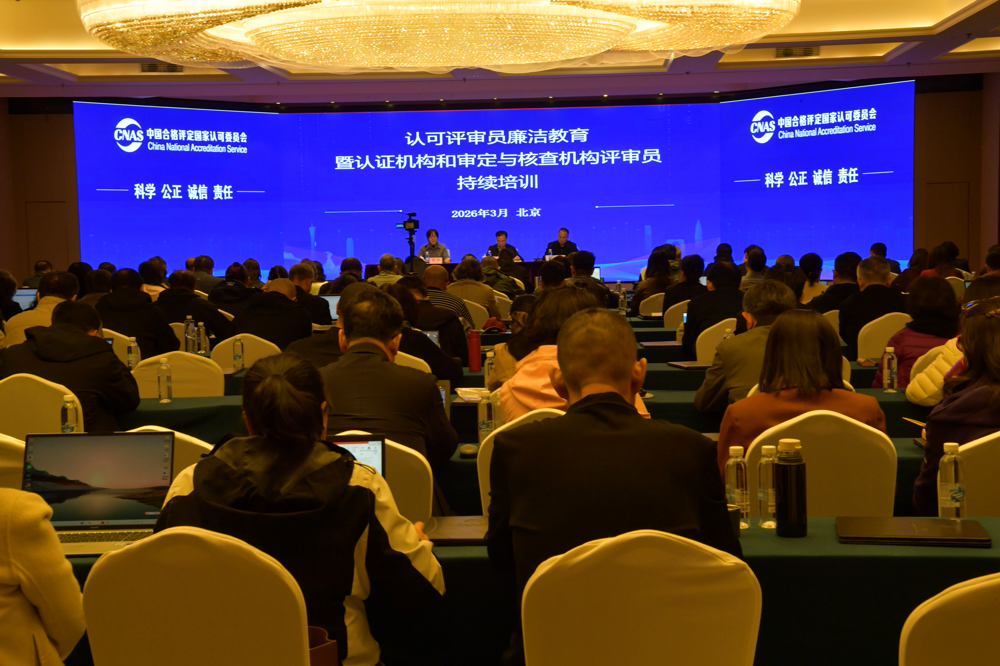 2026年3月30日至31日,中國合格評定國家認(rèn)可委員會(CNAS)在京舉辦了2026年認(rèn)可評審員廉潔教育暨認(rèn)證機(jī)構(gòu)和審定與核查機(jī)構(gòu)評審員持續(xù)培訓(xùn)會。CNAS秘書長、認(rèn)可中心黨委書記、主任陳建良出席并為評審員作廉潔教育專題培訓(xùn),認(rèn)可中心黨委副書記兼紀(jì)委書記謝冬偉主持本次培訓(xùn)會。