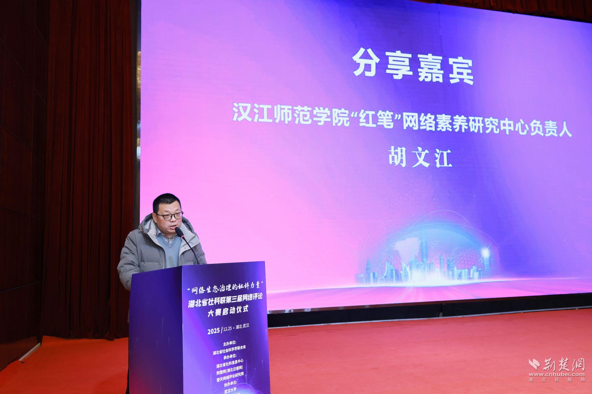 荊楚網(wǎng)(湖北日報網(wǎng))訊 (記者 丁楚風)冬日蓄勢,春潮待發(fā)。12月25日,武漢楚天粵海國際大酒店內(nèi)暖意融融,思想的火花在這里迸發(fā)碰撞。由湖北省社會科學界聯(lián)合會主辦,湖北省社科信息中心、荊楚網(wǎng)(湖北日報網(wǎng))、楚天網(wǎng)絡評論研究院承辦的“網(wǎng)絡生態(tài)治理的社科力量”——湖北省社科聯(lián)第三屆網(wǎng)絡評論大賽正式啟動。