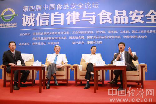 6月11日至17日被確定為今年的全國(guó)食品安全宣傳周。宣傳周主題為“共建誠(chéng)信家園 同鑄食品安全”。全國(guó)食品安全宣傳周啟動(dòng)儀式由國(guó)務(wù)院食品安全委員會(huì)辦公室、工業(yè)和信息化部、農(nóng)業(yè)部、商務(wù)部、衛(wèi)生部、國(guó)家工商總局、國(guó)家質(zhì)檢總局、國(guó)家糧食局、國(guó)家食品藥品監(jiān)管局、中國(guó)科協(xié)共同主辦,經(jīng)濟(jì)日?qǐng)?bào)社、中糧集團(tuán)承辦,中國(guó)經(jīng)濟(jì)網(wǎng)執(zhí)行承辦。圖為對(duì)話環(huán)節(jié) 李凡攝