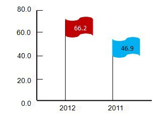 總體來看,2012年市民對(duì)食品安全評(píng)價(jià)信心指數(shù)得分為66.2,比較有信心,相比2011年的46.9,消費(fèi)者對(duì)食品安全現(xiàn)狀評(píng)價(jià)有所提升。