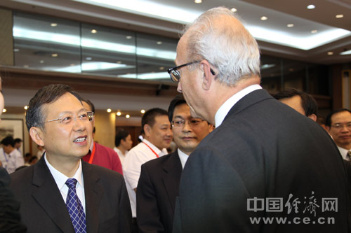 由中國道路交通安全協(xié)會、中國汽車技術(shù)研究中心和中國經(jīng)濟網(wǎng)共同主辦的“2013中國道路交通安全論壇”于8月29日在北京首都大酒店舉行。圖為公安部副部長黃明與國際道路交通安全協(xié)會主席高斯進行交流。中國經(jīng)濟網(wǎng) 郝紅波 攝影