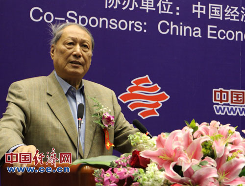 中國(guó)科學(xué)院預(yù)測(cè)科學(xué)研究中心1月26日(周五)在北京中科院數(shù)學(xué)與系統(tǒng)科學(xué)研究院舉辦“2013年中國(guó)經(jīng)濟(jì)預(yù)測(cè)發(fā)布與研討會(huì)”。圖為中國(guó)科學(xué)院預(yù)測(cè)科學(xué)研究中心學(xué)術(shù)委員會(huì)主任 第七、八屆全國(guó)人大副委員長(zhǎng)成思危致辭。中國(guó)經(jīng)濟(jì)網(wǎng)楊瀟/攝影