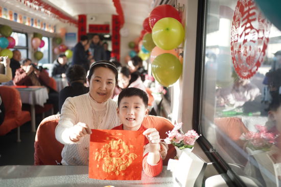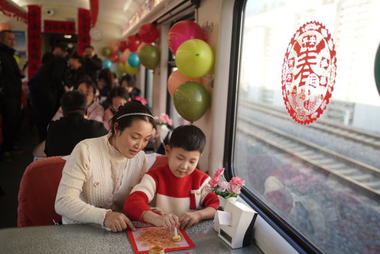 趣味互動(dòng)與安全科普并行,讓旅途安心亦有趣?;顒?dòng)圍繞鐵路乘車常識(shí)與反詐知識(shí)設(shè)置兩輪有獎(jiǎng)問(wèn)答,內(nèi)容涵蓋12306購(gòu)票流程、兒童票新規(guī)、電信詐騙防范等實(shí)用話題。旅客踴躍參與,答對(duì)者均獲贈(zèng)列車準(zhǔn)備的精美紀(jì)念品。乘警結(jié)合題目現(xiàn)場(chǎng)剖析詐騙手法與出行隱患,助力旅客筑牢安全意識(shí)。列車還為小朋友準(zhǔn)備了非遺剪紙和拓印福字體驗(yàn),孩子們?cè)趧?dòng)手創(chuàng)作中感受傳統(tǒng)年味,一幅幅紅艷剪紙、一張張飽滿“?!弊郑c(diǎn)亮了車廂,也傳遞出新春的美好祝愿。