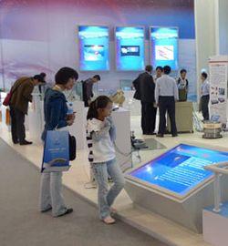在動態(tài)交通信息體驗區(qū),一位觀眾拿起體驗區(qū)的電腦鍵盤、PDA、手機等終端設(shè)備,搜索地點,選擇路線,實時了解周邊地理交通信息。當(dāng)了解到從事動態(tài)交通信息服務(wù)的這家公司已經(jīng)排名到全球第三時,他不禁翹起了大拇指。
