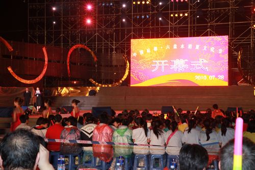 7月28日晚上19時(shí)30分,2010中國(guó)“涼都”六盤水消夏文化節(jié)在貴州省六盤水市拉開了帷幕,整個(gè)“涼都”六盤水變成了人的海洋、歡樂(lè)的海洋。