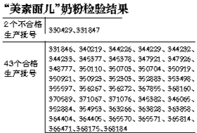 據(jù)介紹,江蘇共封存涉嫌篡標(biāo)“美素麗兒”奶粉9841.3公斤,送檢207批次樣品。檢測結(jié)果是205個批次合格,涉及43個生產(chǎn)批號;2個批次不合格,涉及2個生產(chǎn)批號,主要是蛋白質(zhì)含量未達標(biāo)。